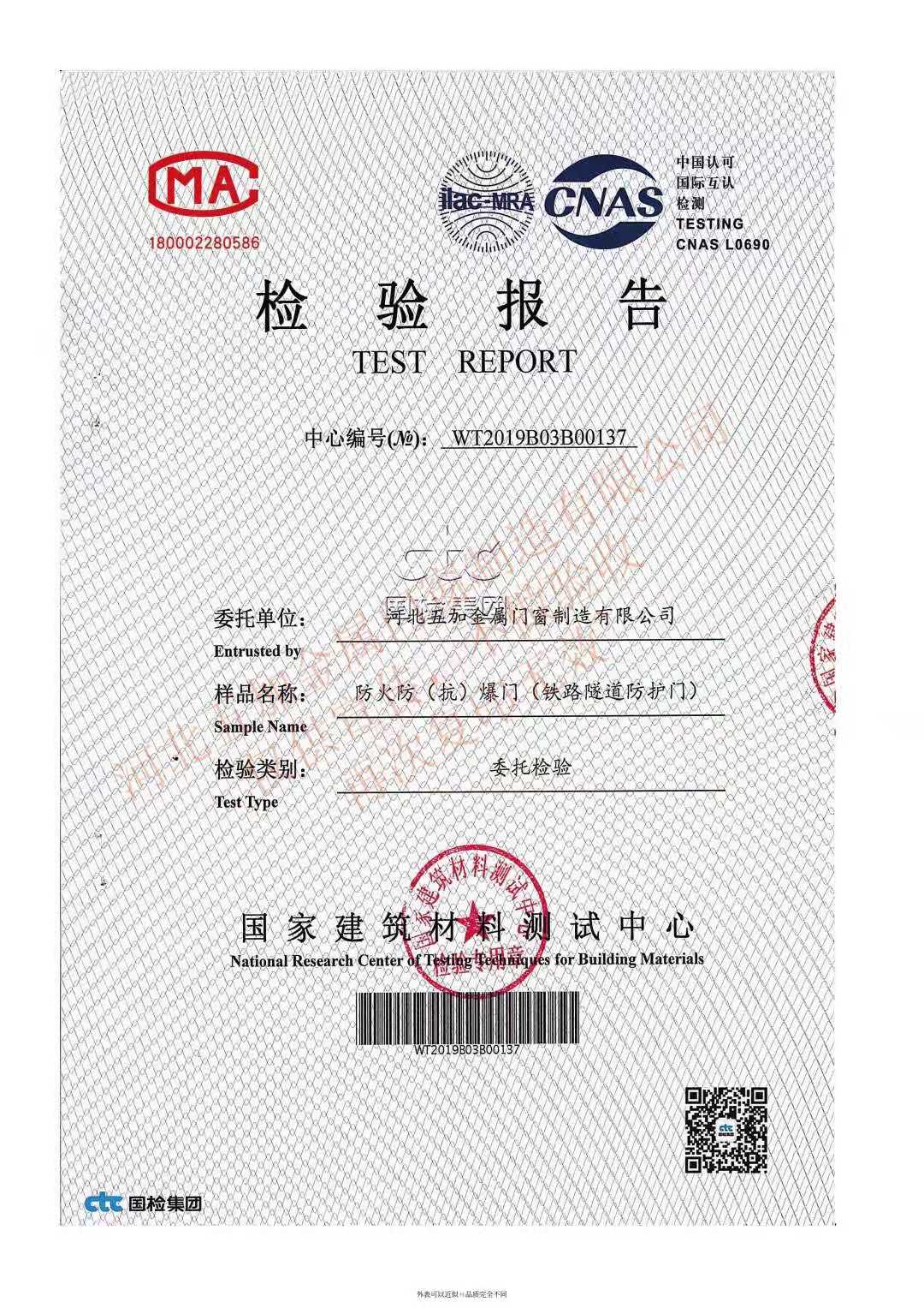 首頁 > 檢驗報告 > 防爆門抗爆門檢驗報告系列