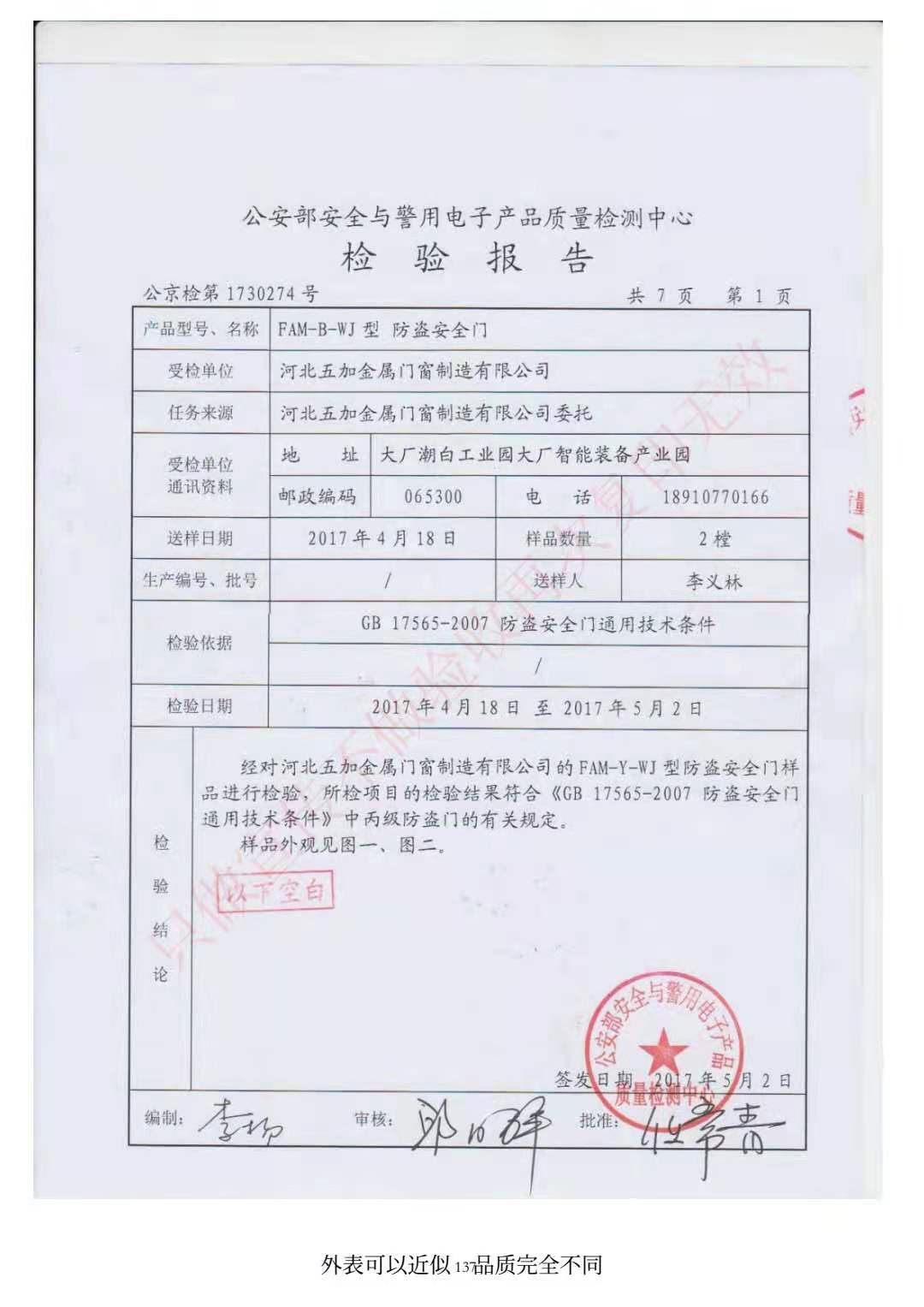 首頁 > 檢驗(yàn)報(bào)告 > 防盜安全門檢驗(yàn)報(bào)告系列