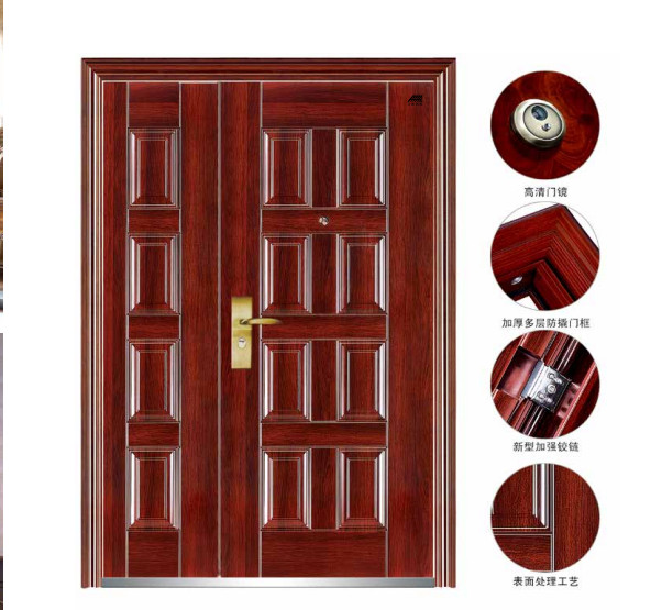 可以說是市場上見得多、老百姓用得多的。百姓所熟悉的防盜門大都屬于此系列。這類門價格較低廉和合理,它的銷量占市場總銷量的90%以上。這種門的缺點在于外型線條堅硬,很難與現代的室內裝飾相融合。
