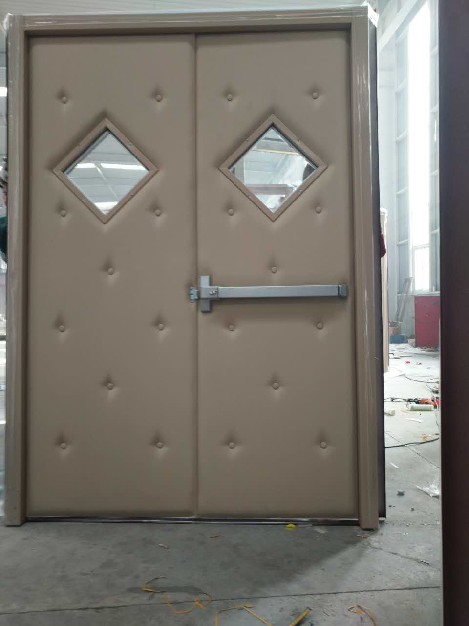 隔聲觀察窗:采用雙面安裝鋼化玻璃,玻璃厚度至少10mm,在玻璃四周的縫隙采用合成橡膠制的襯墊來(lái)加以密閉。雙層玻璃間距離 為60mm。在其夾層里安裝鍍鋅冷溫壓軋聲響鑲板隔離吸音框。