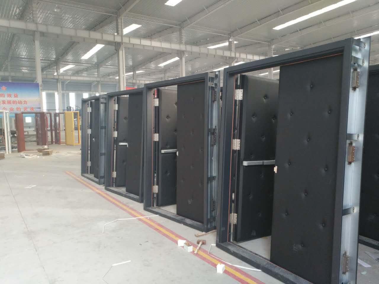 隔聲門門框與墻壁及頂使用的隔音板的結構基本相同,整扇門是以雙重磁性聲響襯墊或通過相應的密封條來達成聲響上的密閉性。