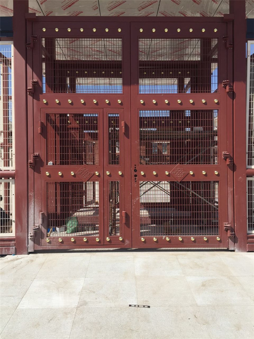 監室門可向門洞兩側雙向開啟或左、右兩側單向開啟。監室門主要由開門機組件、傳動件罩殼、傳動組件、導軌、行走輪、支架、導軌罩殼、門扇、控制箱、導向輪、密封組件等組成。導軌安裝于門洞上邊,門扇通過行走輪組件懸掛于導軌上,由開門機通過傳動組件帶動行走輪、門扇一起行走。傳動組件內(或導軌一側)設有限位開關,門開啟和關閉到位后,即自動停止。導軌、傳動組件、開門機上均設有罩殼防塵、防雨,門扇下方設有導向輪和擋鐵,以限制門扇前后擺動。如遇停電或電路故障,可用專用鑰匙將開門機中離合器分離,即可實現手動啟閉。監室門不僅堅固可靠,而且有很好的耐久性,采用的原材料,精密的工藝及制造技術。外表采用先進的粉末噴涂表面處理工藝,不僅堅固可靠,而且有很好的耐久性?? 1、集中遠程控制,按照指令實現單獨開門或關門,以及總開、總關所有門扇;????2、總線制布線,工程施工十分簡潔,布線成本。???? 3、采用一體化動力梁設計,免維護結構,不但在安裝施工中非常方便,而且在日后需要移裝時亦可簡單拆分后再次安裝使用。???? 4、門扇運行時遇阻能電動退回,具有防夾人的安全功能,實現人性化管理。??????5、門扇遇阻退回后能電動執行再關門動作,直到把門關閉;累計遇阻3次即電動報警,防止蓄意破壞。???? 6、開啟門扇時能聯動各門口攝像頭,同步監視現場情況;???? 7、關門到位電動實現馬達鎖定功能,并可聯動另加電鎖,實現雙鎖定的多重安全保障。???? 8、可設定在火警信號下實現手動開、關門功能,符合火災等緊急情況疏散要求。