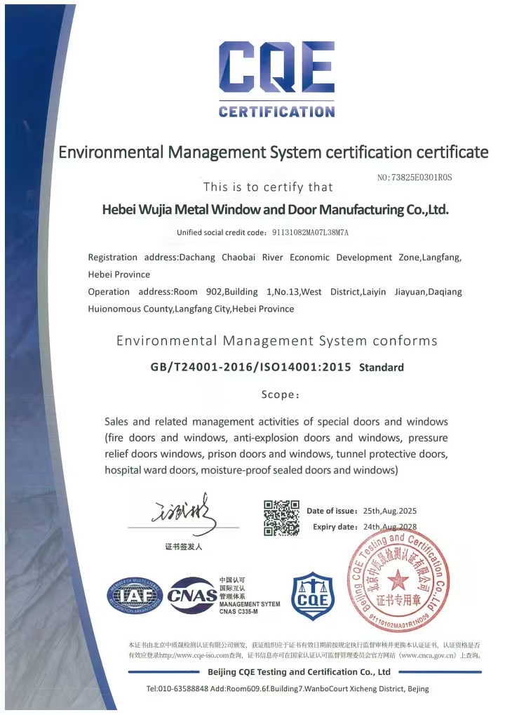 環(huán)境管理體系認證證書2025年-2028年英文版